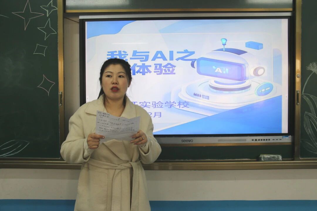 各学科组积极研讨AI在教学中的应用,并按年级组分成两个会场同时展示汇报。语文组老师用AI李白模型,开启古今对话;数学老师用DeepSeek动态生成几何体三维模型,破解空间难题;英语老师利用Kimi虚拟外教,实时跟读纠正发音。会场百花齐放,每位教师都把自己总结的经验倾囊相授,畅所欲言。