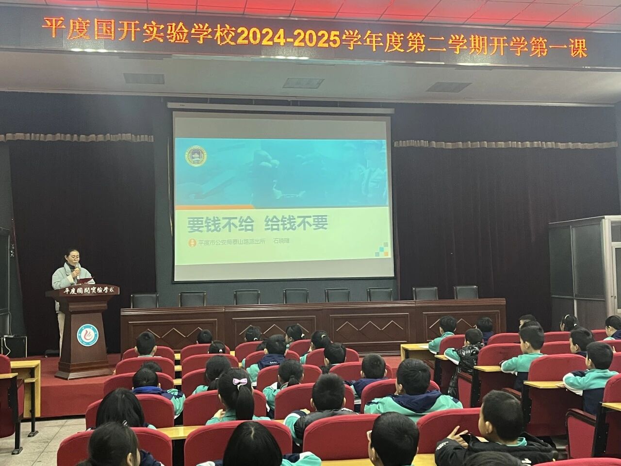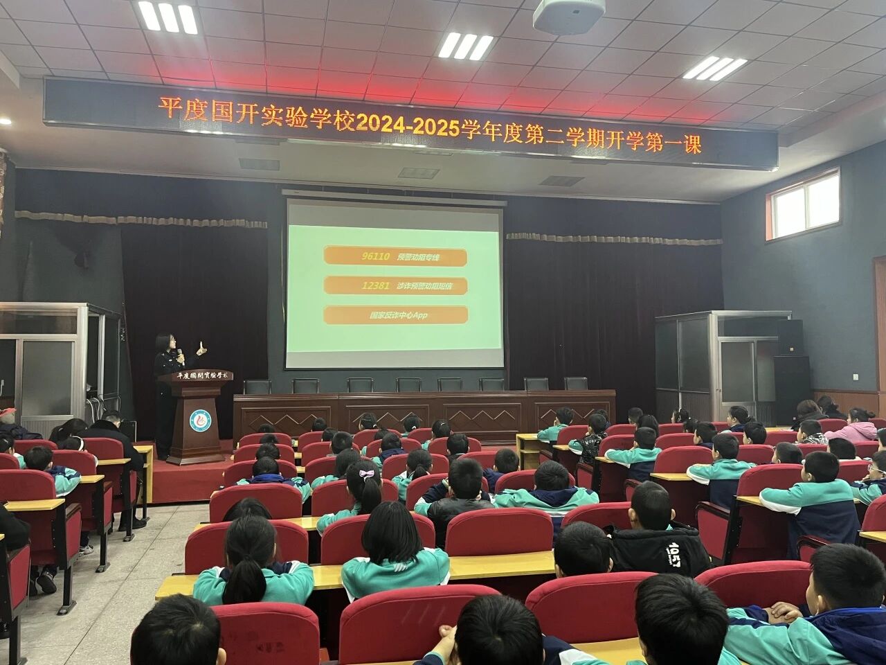 为提升学生网络安全意识,筑牢校园反诈防线,平度国开实验学校小学部于2025年2月28日开展“开学第一课——防范电信网络诈骗”主题教育讲座。活动特别邀请泰山路派出所石警官担任主讲人,1-3年级全体少先队员齐聚学校多功能厅参与学习。