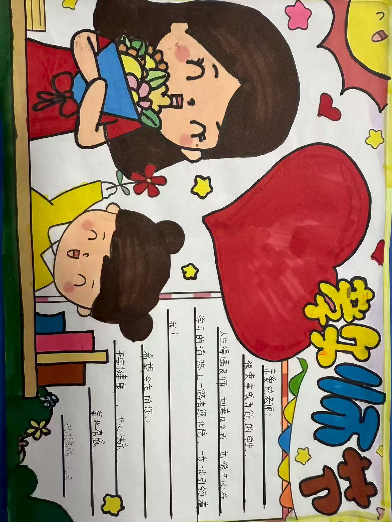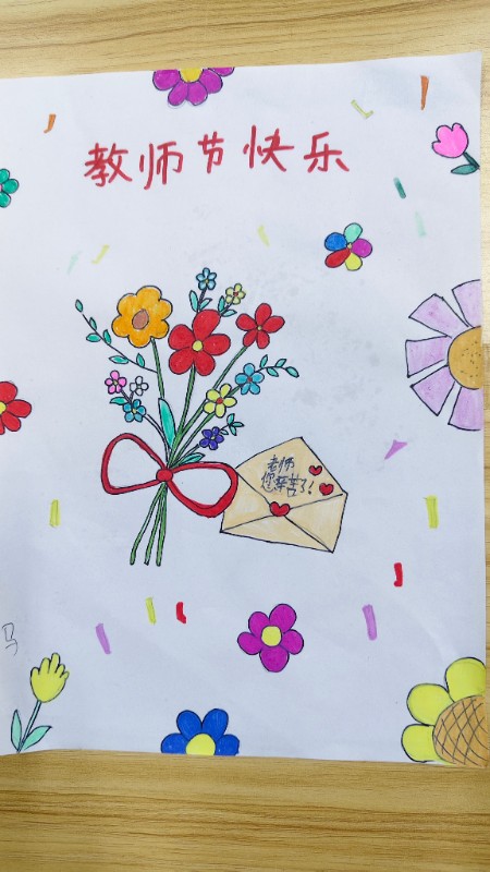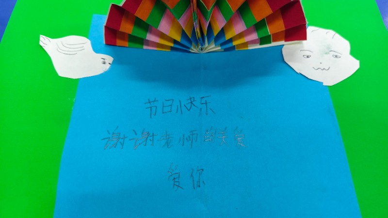 一张卡片,几许心意。发挥想象,用贴纸、彩绳装饰出专属贺卡,把想对老师说的悄悄话、暖心话都写在上面,让祝福随卡片传递。