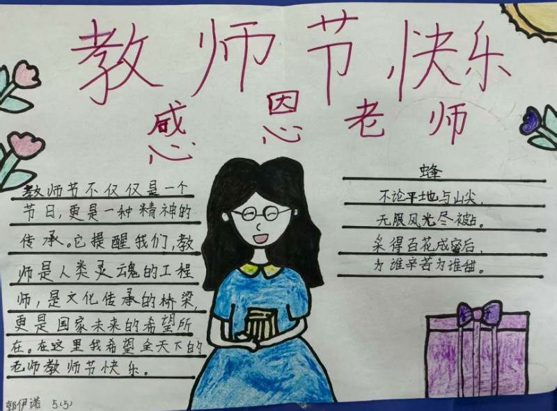 绘制一份精致手抄报,摘抄赞美老师的诗句、名言,用笔墨书写对老师的敬佩与感谢,让传统文化与感恩之心碰撞出别样火花。