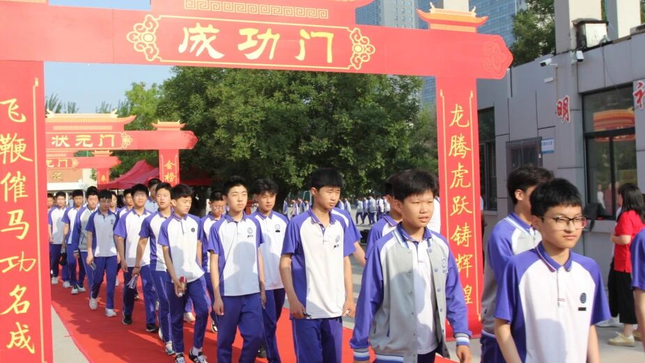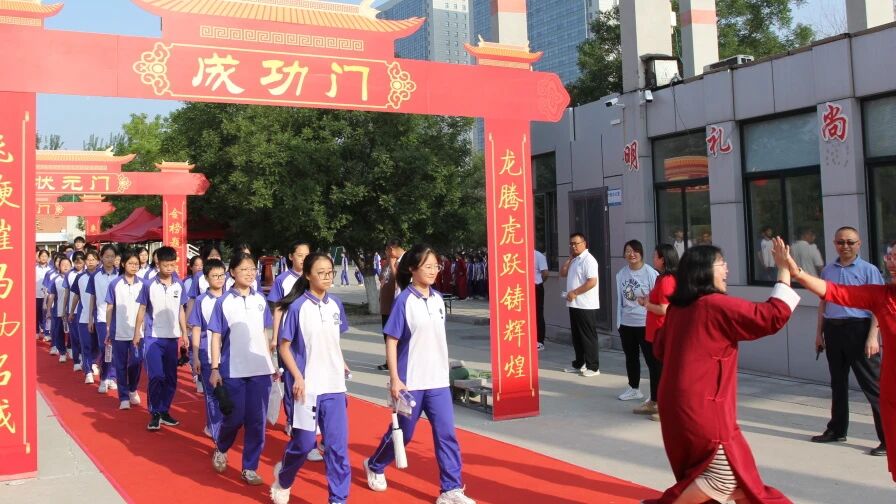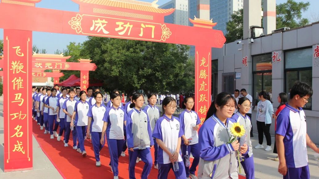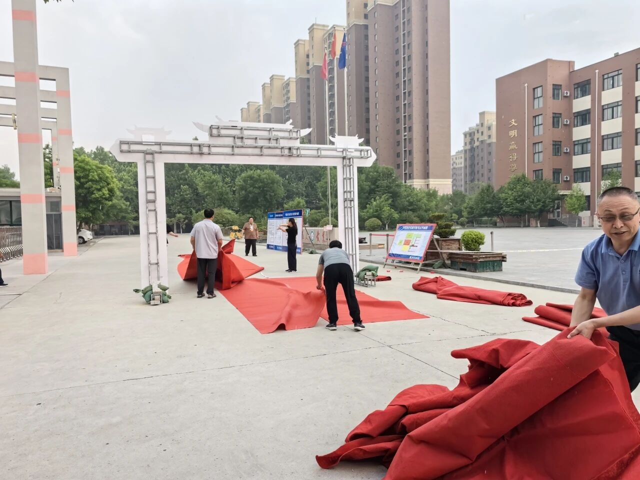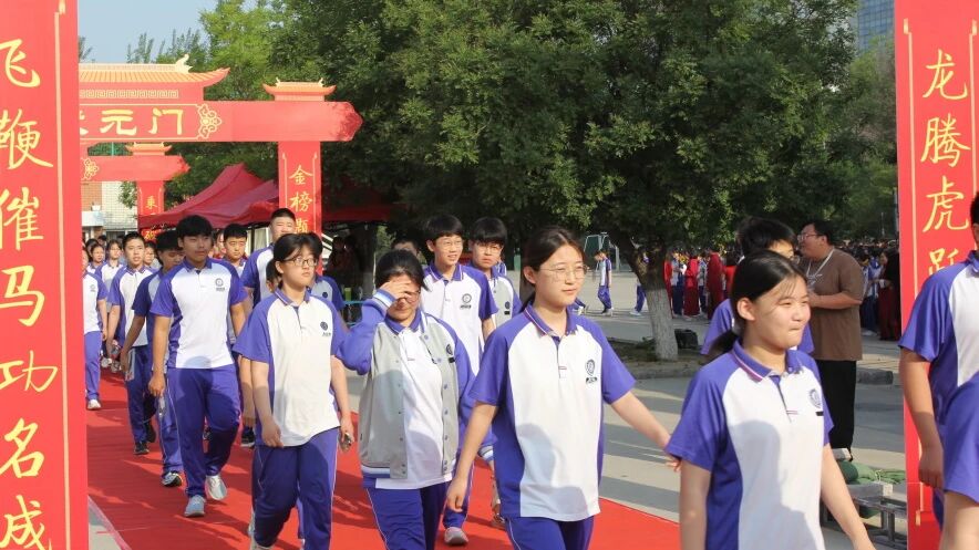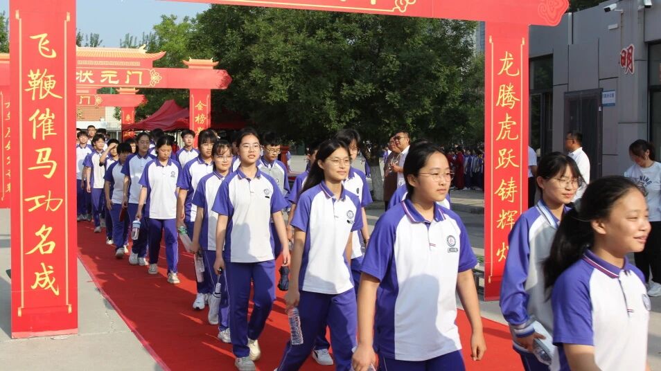 学校领导老师凌晨集结,精心布置地生会考出征会场:红毯铺就“奔赴之路”,打造三重凯旋门,以匠心细节传递必胜信念。