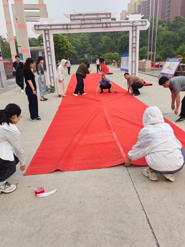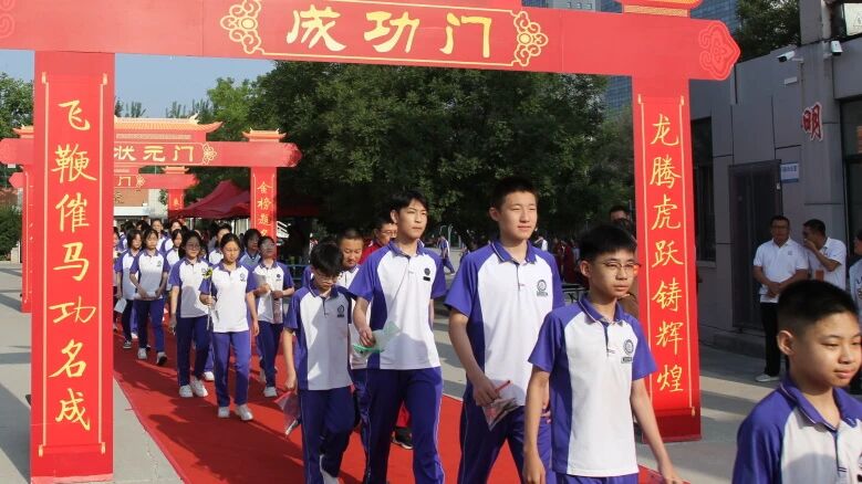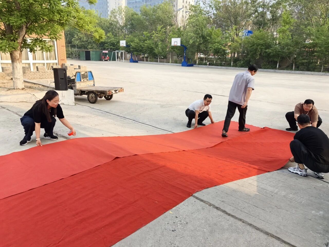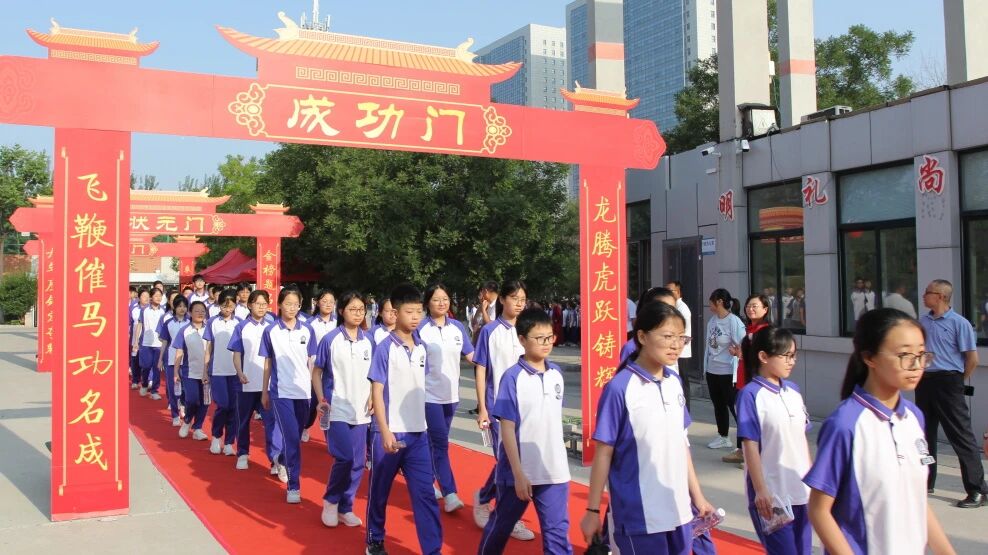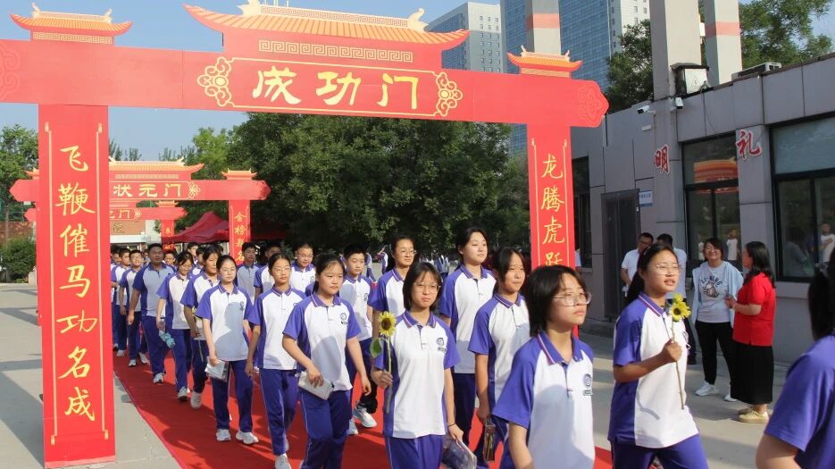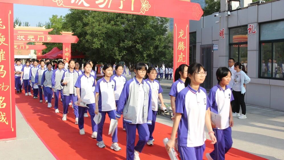 学校领导老师凌晨集结,精心布置地生会考出征会场:红毯铺就“奔赴之路”,打造三重凯旋门,以匠心细节传递必胜信念。
