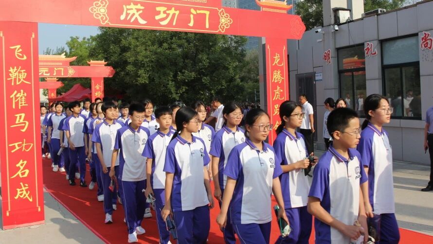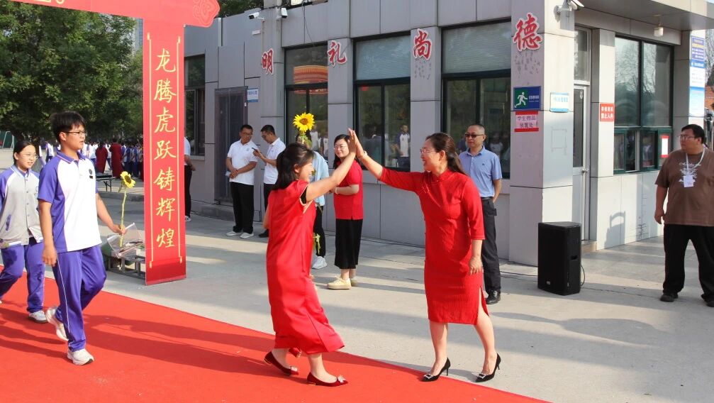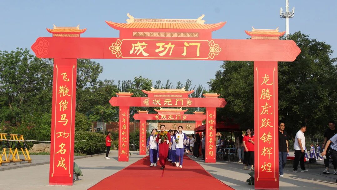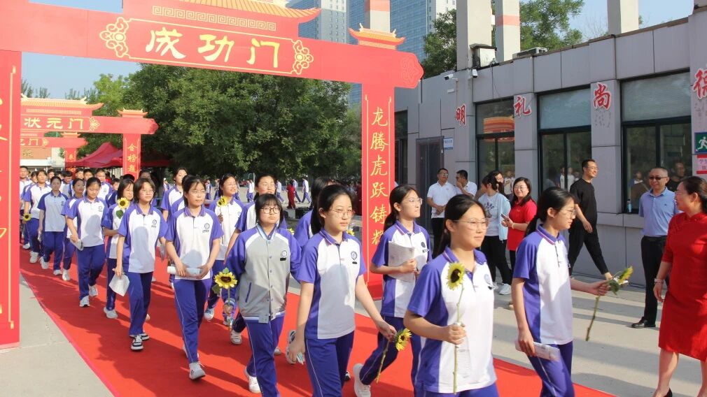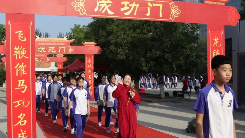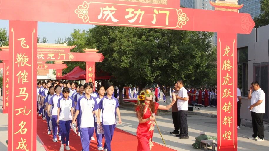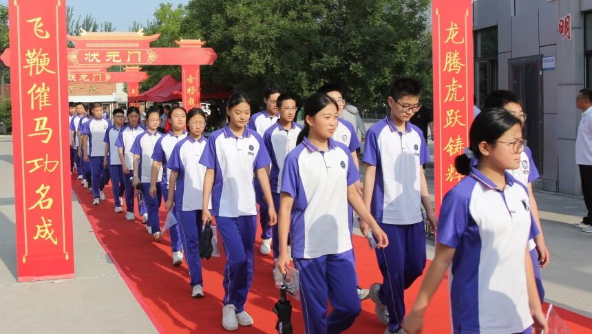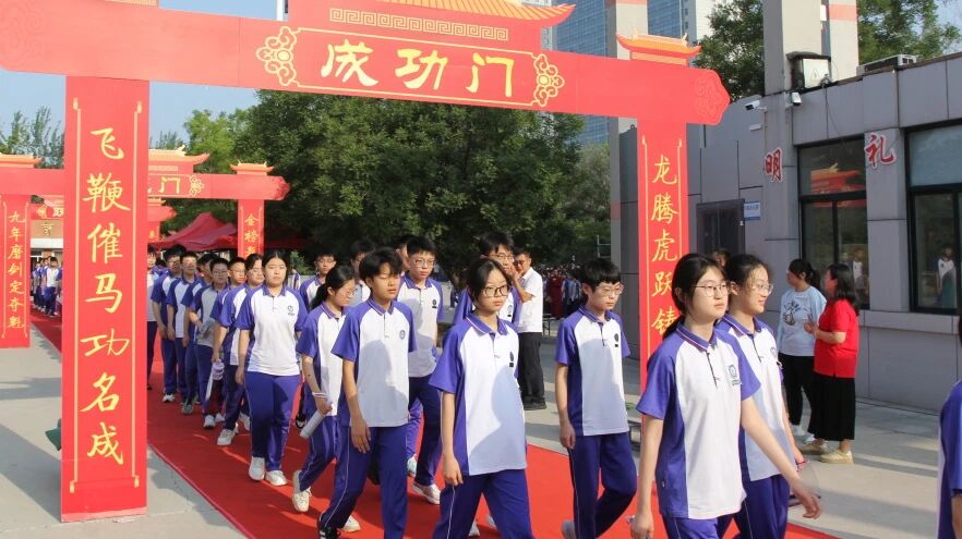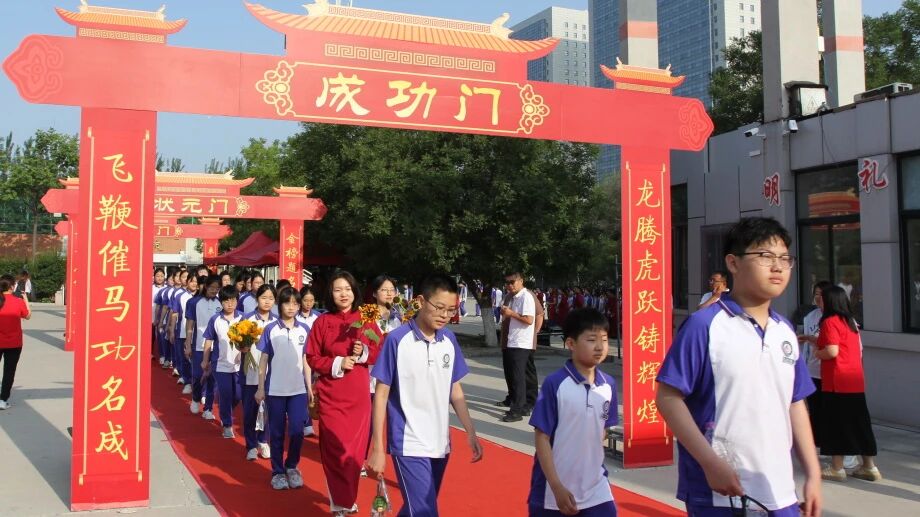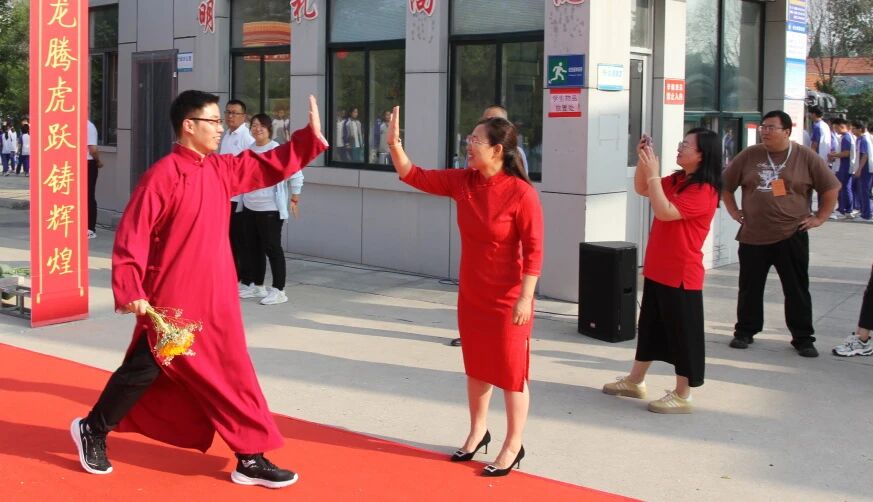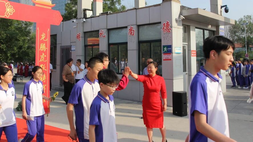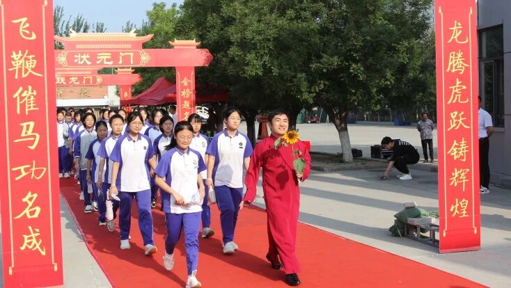 全体初二班主任身着喜庆的红色旗袍,如同一朵朵绽放的希望之花。这场融合了传统祝福与青春热血的出征仪式,正以最炽热的方式为少年们壮行。