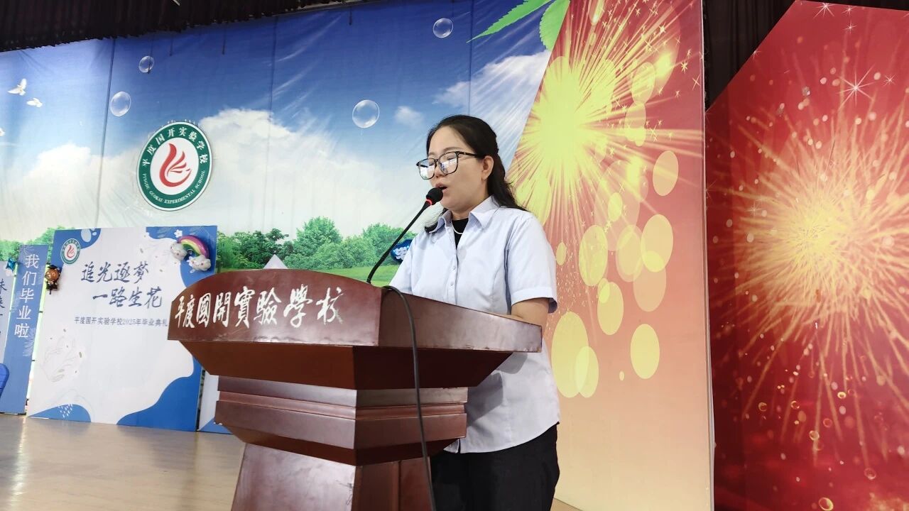 灯光渐暗,音乐轻扬。 2025年7月3日,平度国开实验学校2025届六年级毕业典礼在演播厅庄严拉开帷幕。校领导与老师们饱含深情与期许的致辞,为这场青春的盛典奠定了温暖的基调——他们回顾孩子们成长的足迹,展望未来的航程,字字句句都凝聚着殷切的嘱托与真挚的祝福。