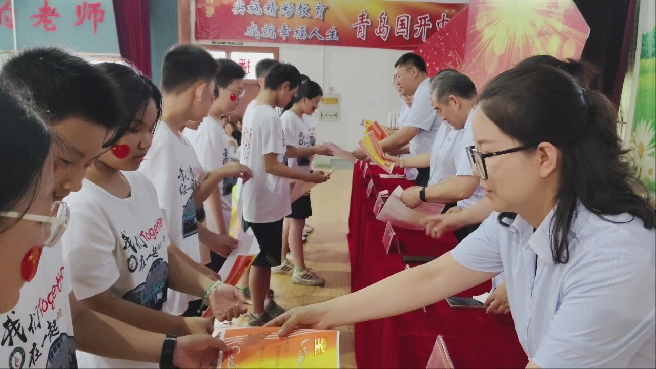 随后,典礼迎来首个荣耀时刻。在激昂的乐曲和热烈的掌声中,“优秀少先队员”和“优秀班干部”们依次走上舞台。他们挺直腰杆,脸上洋溢着自豪与喜悦,从领导手中接过象征肯定与责任的奖状。这抹亮色,不仅是对过往努力的嘉奖,更是对全体毕业生追求卓越、勇于担当的无声激励,为即将开启的新征程注入了榜样的力量。