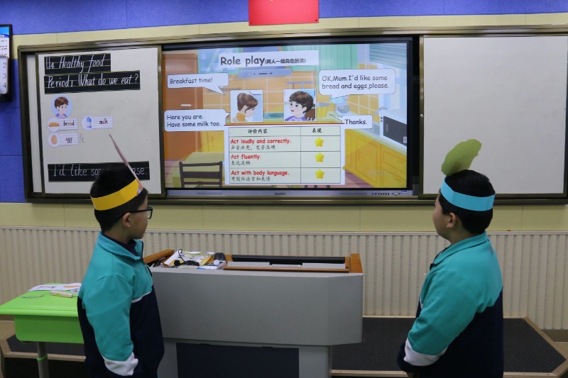 胜利路小学吴瑞菊老师则以三年级课程《Unit 4 What do we eat? Period 1》为例,吴老师以歌曲、角色扮演和闯关活动贯穿课堂,寓教于乐,让学生在轻松的氛围中掌握核心词汇与句型。课堂注重听说训练,通过师生互动、生生互动,有效提升了学生的语言表达能力,展现了“玩中学,学中乐”的教学智慧。