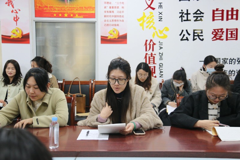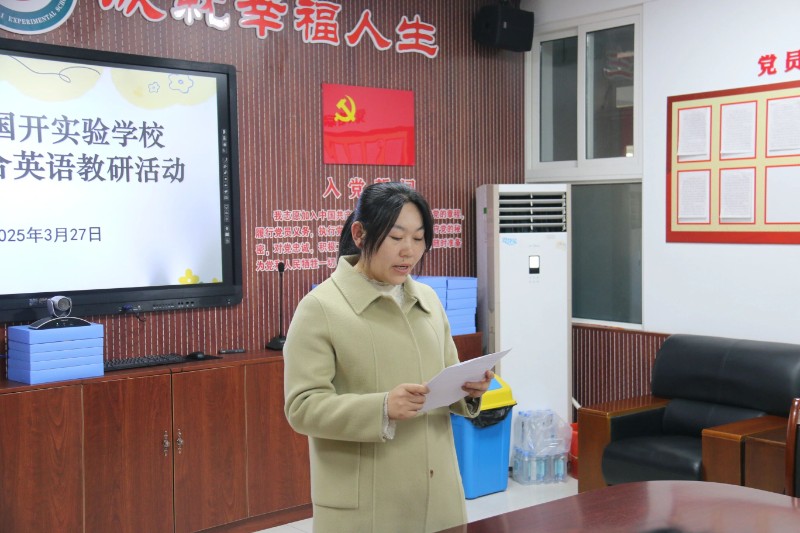 课堂观摩结束后,全体教师移步会议室展开研讨。两位授课教师分别分享了教学设计思路与课后反思。张婷婷老师强调“以学生为中心”的课堂活动设计,吴瑞菊老师则聚焦“生活化教学”,让每个学生乐于表达、敢于表达。
